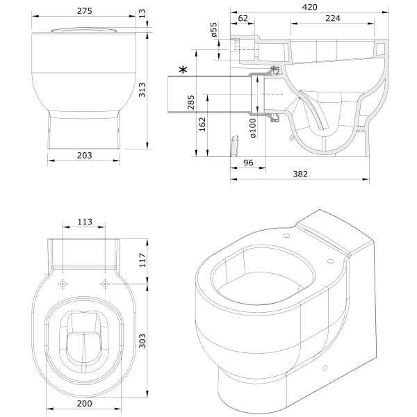 - Pipe d’evacuation pour cuvette sur pied S|H non inclus