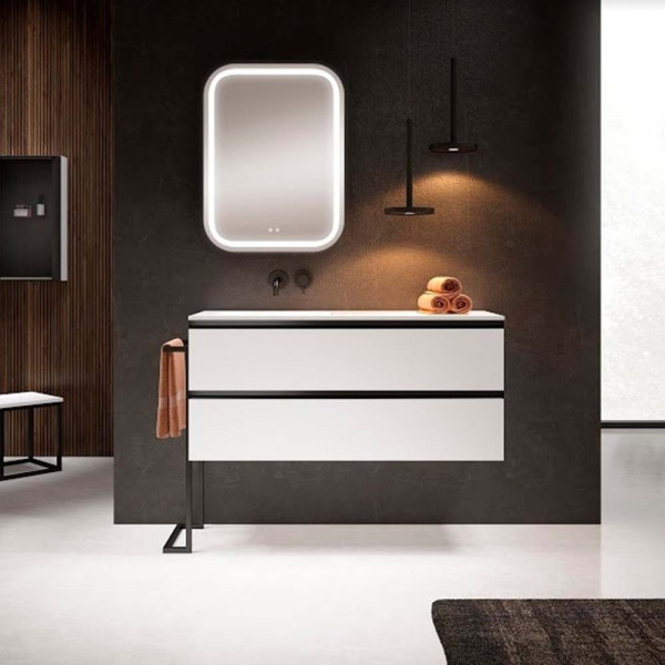 MEUBLE SALLE DE BAIN-PLAY Tiroir en métal avec système de tiroirs doux et silencieux. Système de suspension murale de sécurité inclus