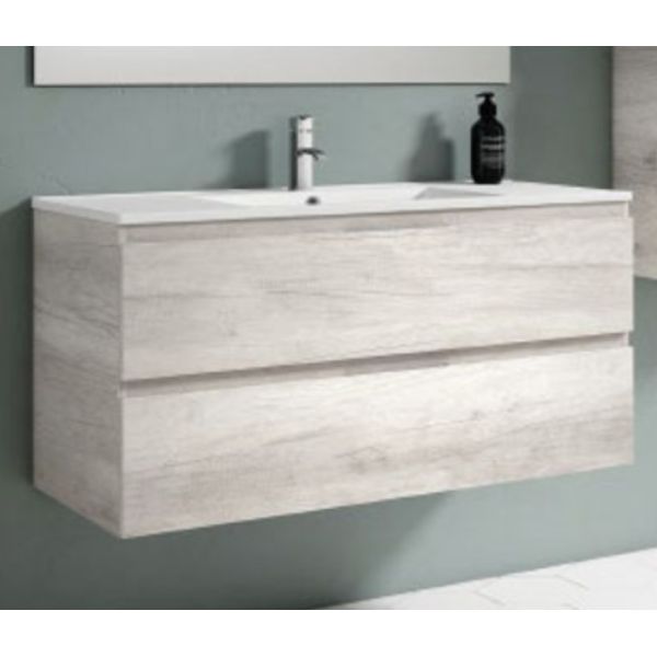 Base de vanité modèle de rue. Tiroir en métal ou en bois avec système de fermeture douce et silencieuse. Système de suspension murale de sécurité inclus.