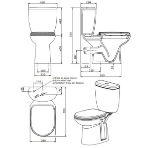 Pack Aveiro cuvette S/H réservoir avec alimentation d'eau par le dessous et mécanisme DD