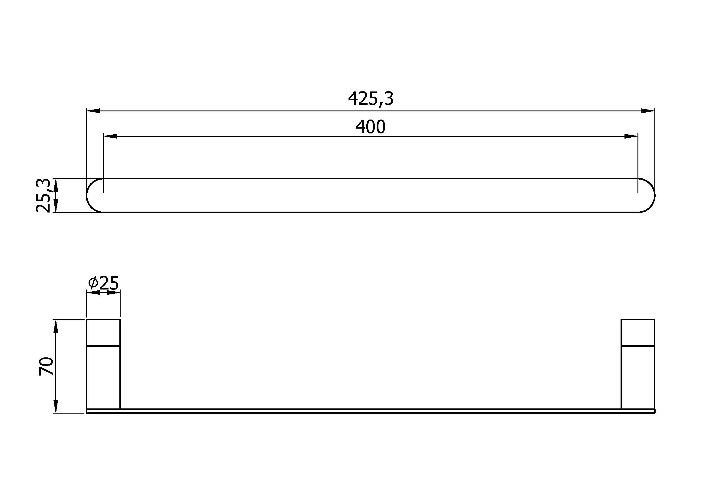 - Porte-serviettes droit en acier inoxydable AISI 304. - Durabilité et résistance à la corrosion. - Adapté aux environnements publics et à une fréquence d'utilisation élevée. - Fabriqué en acier inoxydable satiné. - Disponible également en finition or brossé (NOFER 16870.40.G), en finition brillante (NOFER 16870.40.B) et en finition noire (NOFER 16870.40.N).