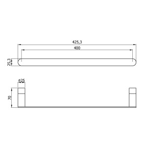 - Porte-serviettes droit en acier inoxydable AISI 304. - Durabilité et résistance à la corrosion. - Adapté aux environnements publics et à une fréquence d'utilisation élevée. - Fabriqué en acier inoxydable satiné. - Disponible également en finition or brossé (NOFER 16870.60.G), en finition brillante (NOFER 16870.60.B) et en finition noire (NOFER 16870.60.N).